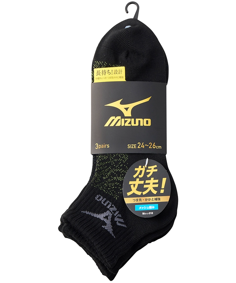 | 商品名 | 【3足組】MIZUNO デイリー ガチ丈夫 メンズ 10cm丈 甲メッシュ 裏出し ブラック ミズノ |