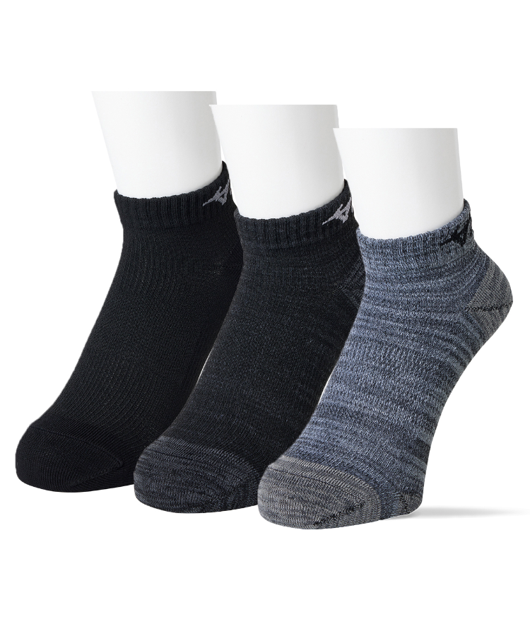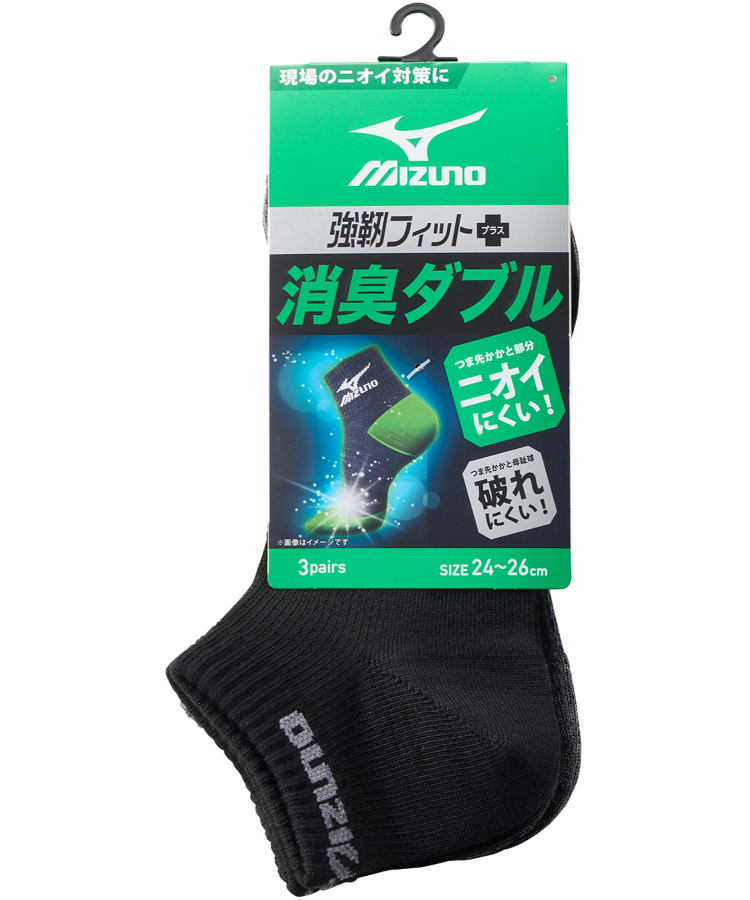 【3足組】MIZUNO WORK 消臭ダブル メンズ 8cm丈 甲メッシュ サポート ダーク引揃 ミズノ