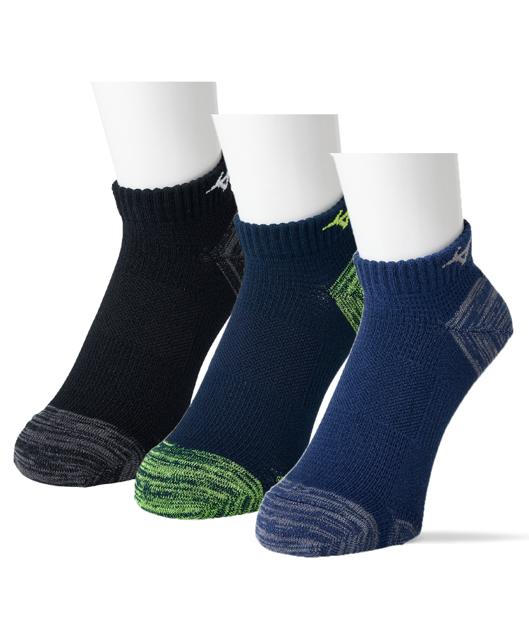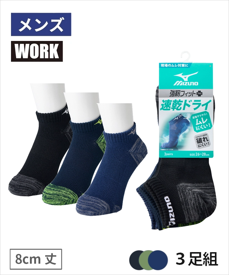 【3足組】MIZUNO WORK 速乾ドライ メンズ 8cm丈 甲メッシュ サポート つま先踵引揃切替 ミズノ