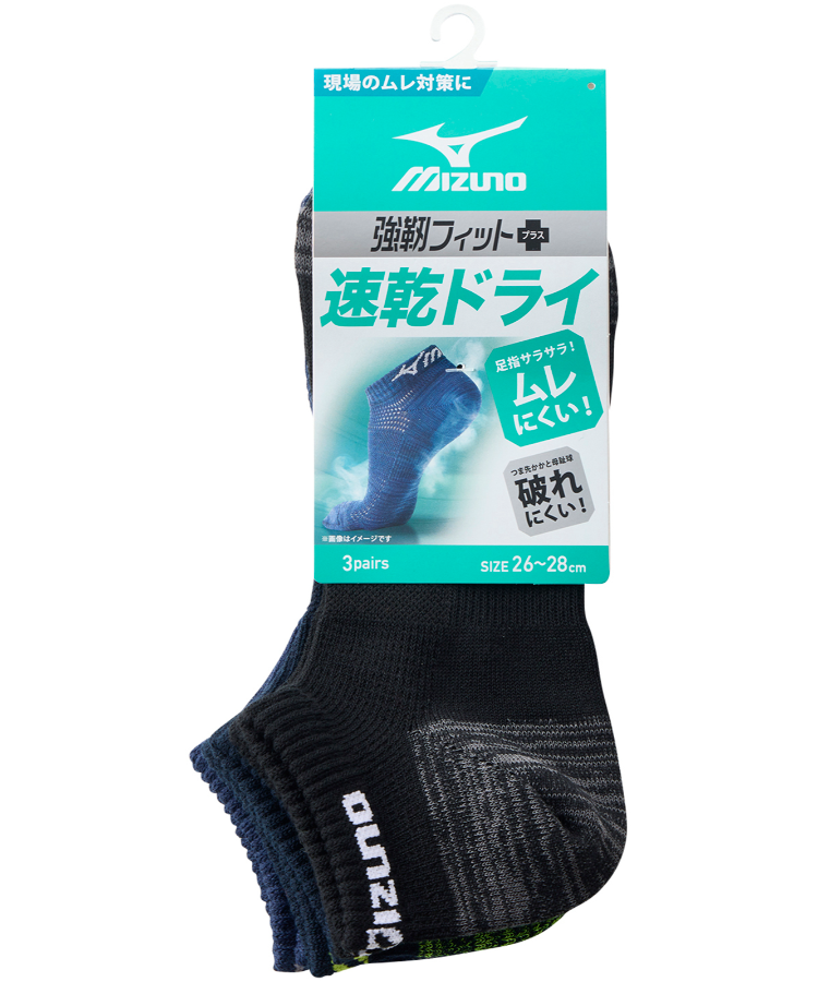 | 商品名 | 【3足組】MIZUNO WORK 速乾ドライ メンズ 8cm丈 甲メッシュ サポート つま先踵引揃切替 ミズノ |