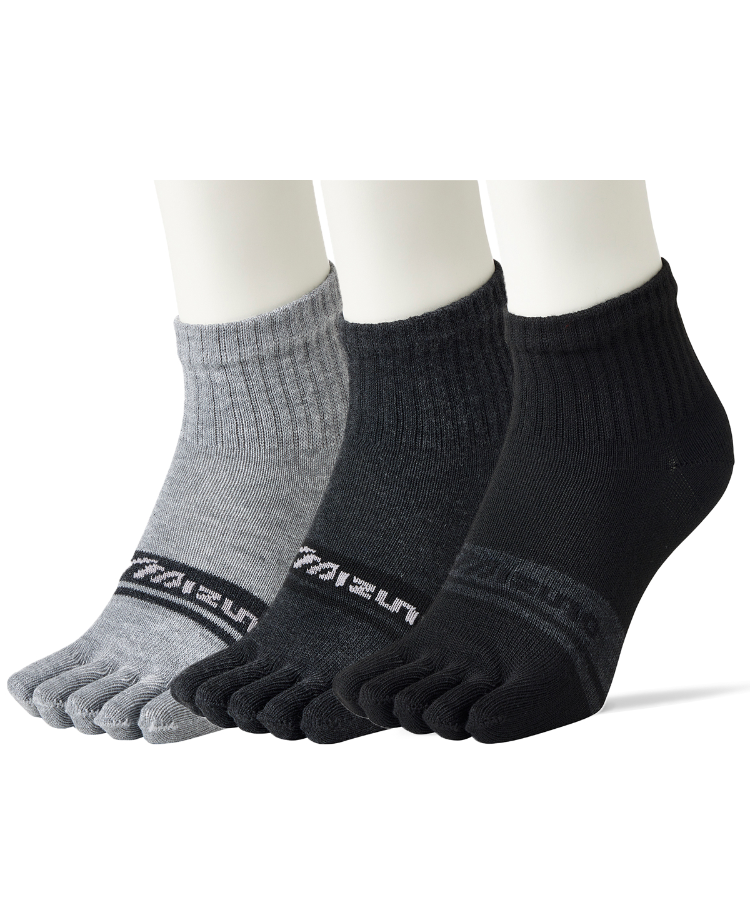 【3足組】MIZUNO デイリー ガチ丈夫 メンズ 10cm丈 5本指 ボーダー ミズノ