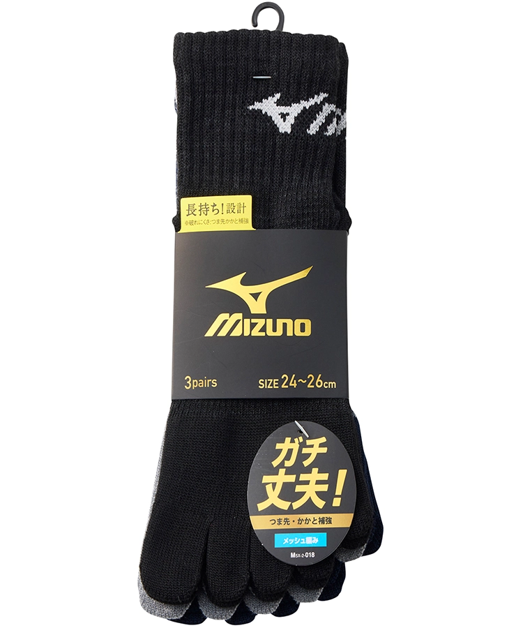 【3足組】MIZUNO デイリー ガチ丈夫 メンズ 10cm丈 5本指 甲メッシュ 引揃ライン ミズノ