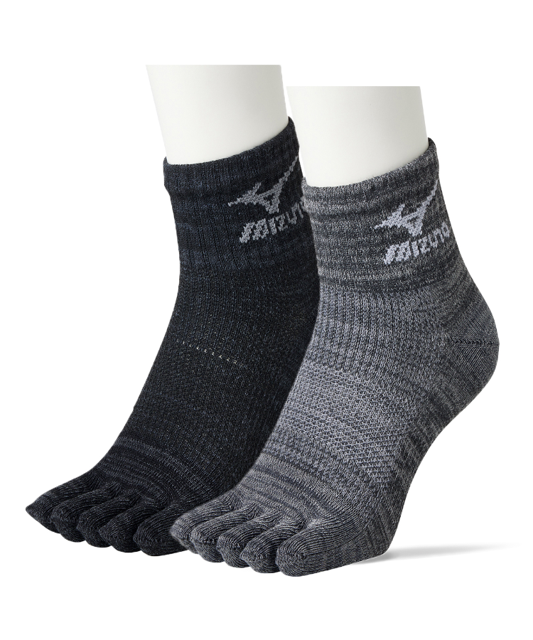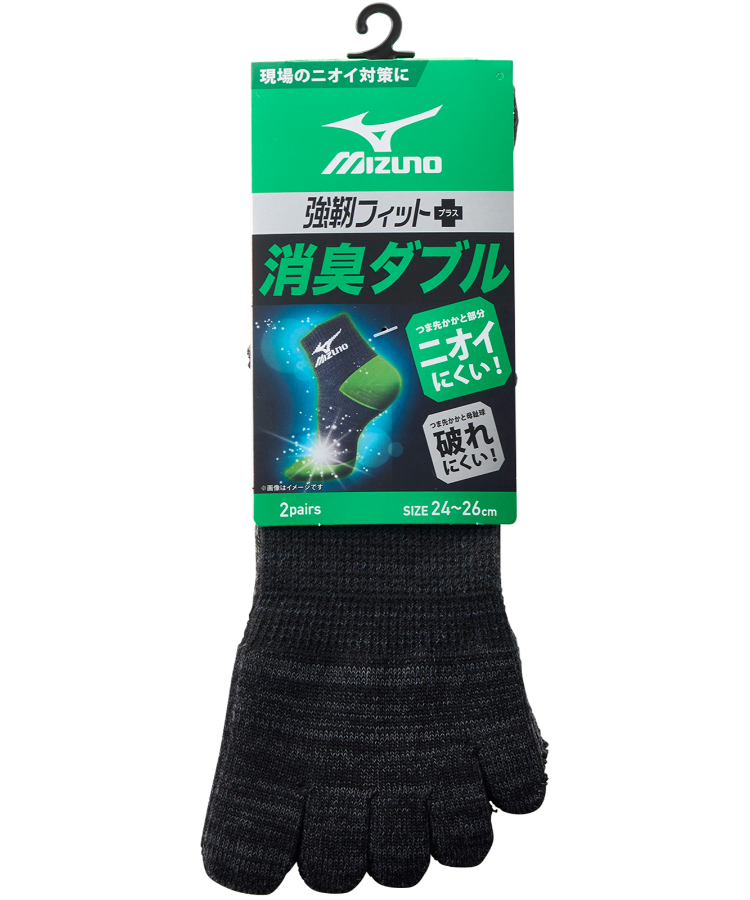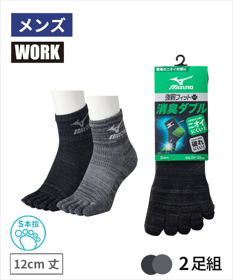 【2足組】MIZUNO WORK 消臭ダブル メンズ 12cm丈 5本指 甲メッシュ サポート ダーク引揃 ミズノ