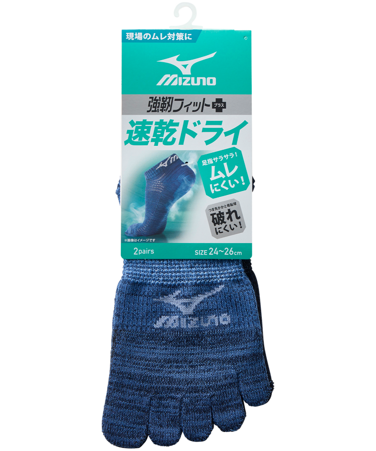 【2足組】MIZUNO WORK 速乾ドライ メンズ 12cm丈 5本指 甲メッシュ サポート 引揃デニム風 ミズノ