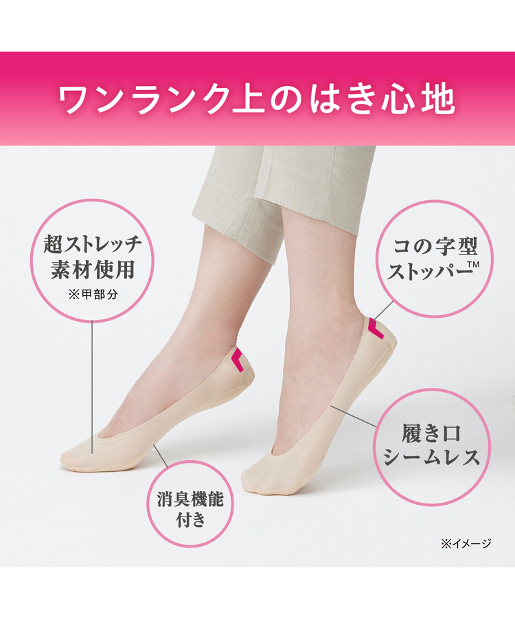 足の動きと生地の伸縮を研究した独自開発の「コの字型ストッパー」が、かかとをしっかりホールドします。