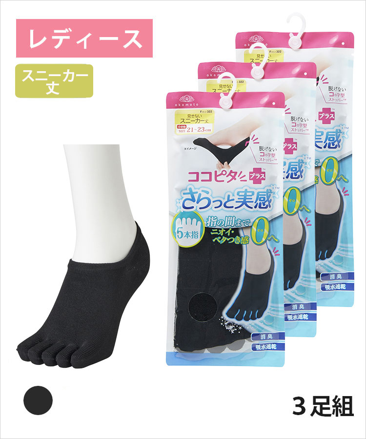 | 商品名 | 【3足組】ココピタ さらっと実感 レディース スニーカー丈 5本指 横編 無地 |