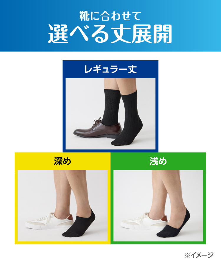 通気性2倍、1秒吸水・スピード速乾、消臭機能付きで足元をさらっと快適に。