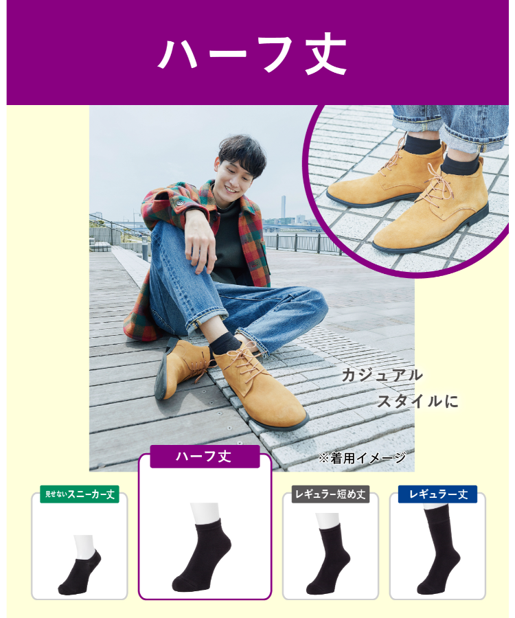 | 商品名 | 【2足組】ココピタ あったか実感 メンズ ハーフ丈 無地 |