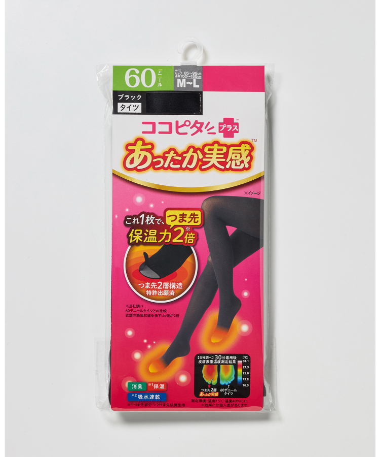 | 商品名 | 【2足組】ココピタ あったか実感 レディース タイツ 60D 無地 |