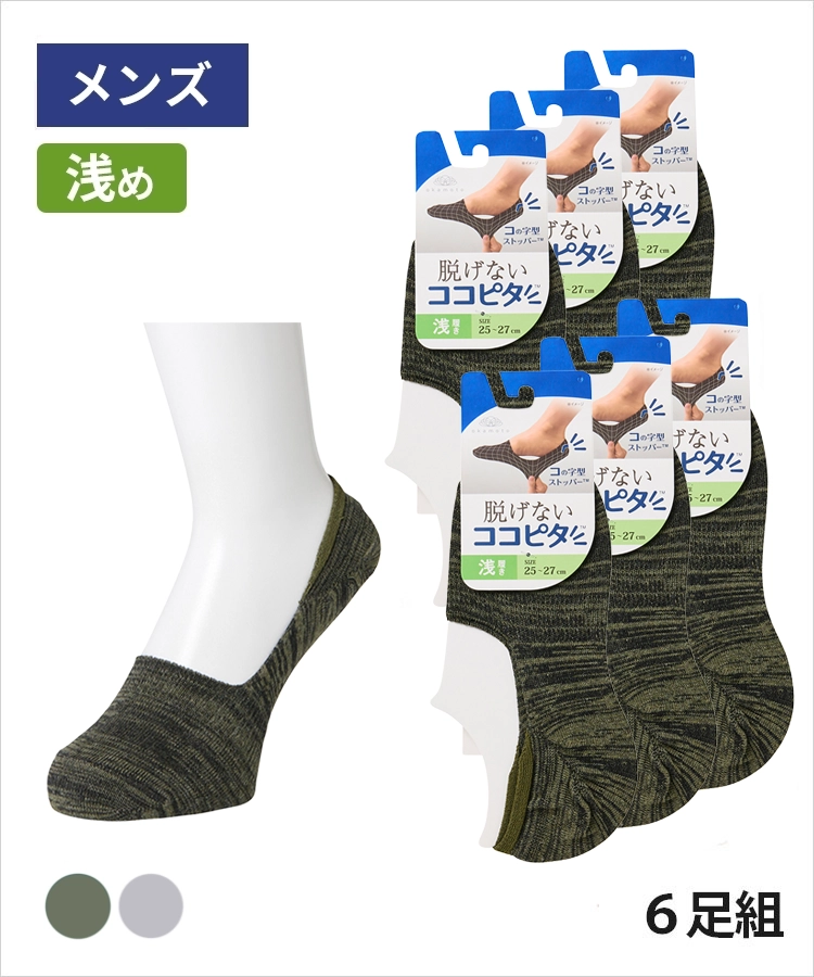 <春フェア>【送料無料】【6足組】ココピタ ベーシック メンズ 浅履き 綿混 丸編み 引揃(ココピタnaviスニーカー用浅め)