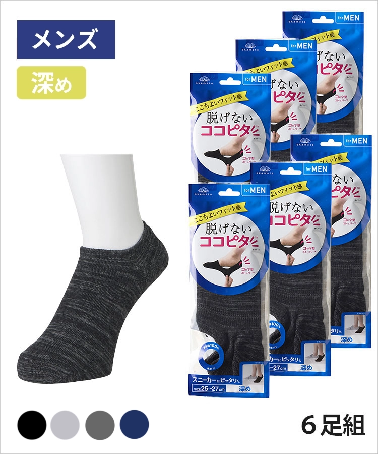 <春フェア>【送料無料】【6足組】ココピタ ベーシック メンズ スニーカー丈 綿混 丸編み 引揃(ココピタnaviスニーカー用深め)