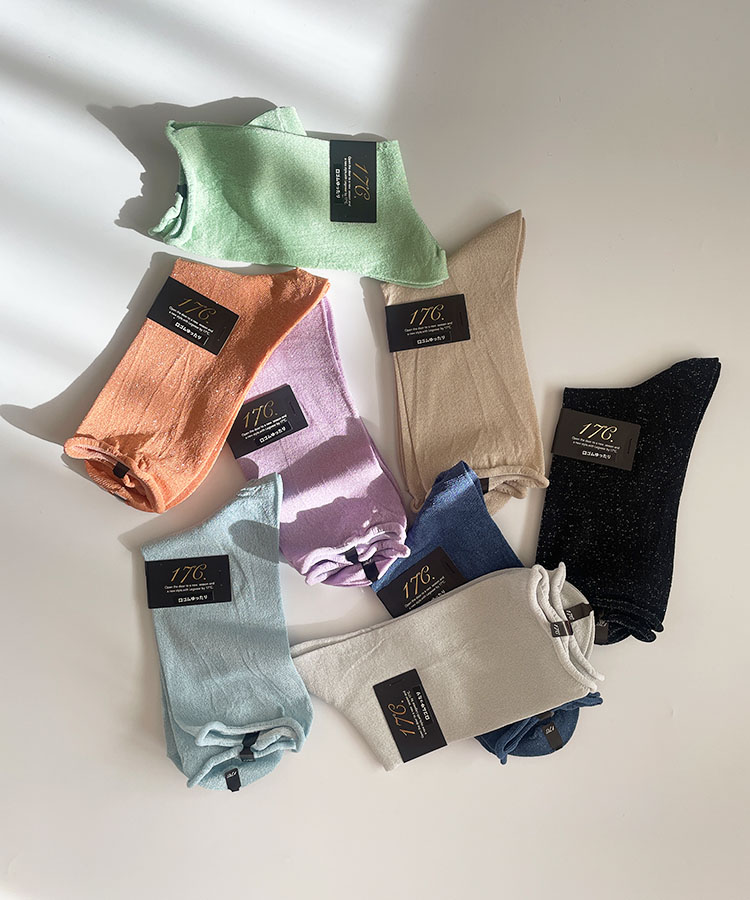 多彩なカラーで様々なシーンでお履きいただけるプレーンタイプのラメソックスです。