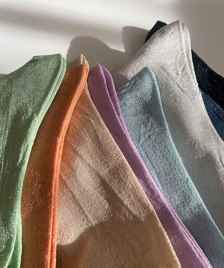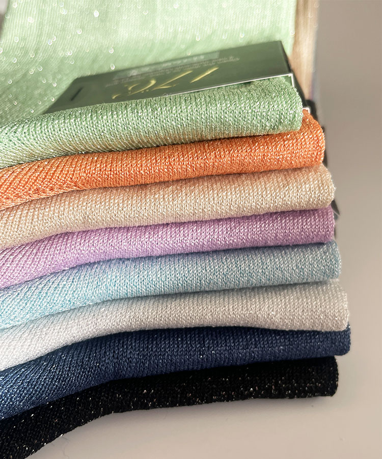 繊細なラメ糸を使用しており、ラメ特有のチクチク感がなくやわらかな風合いです。
