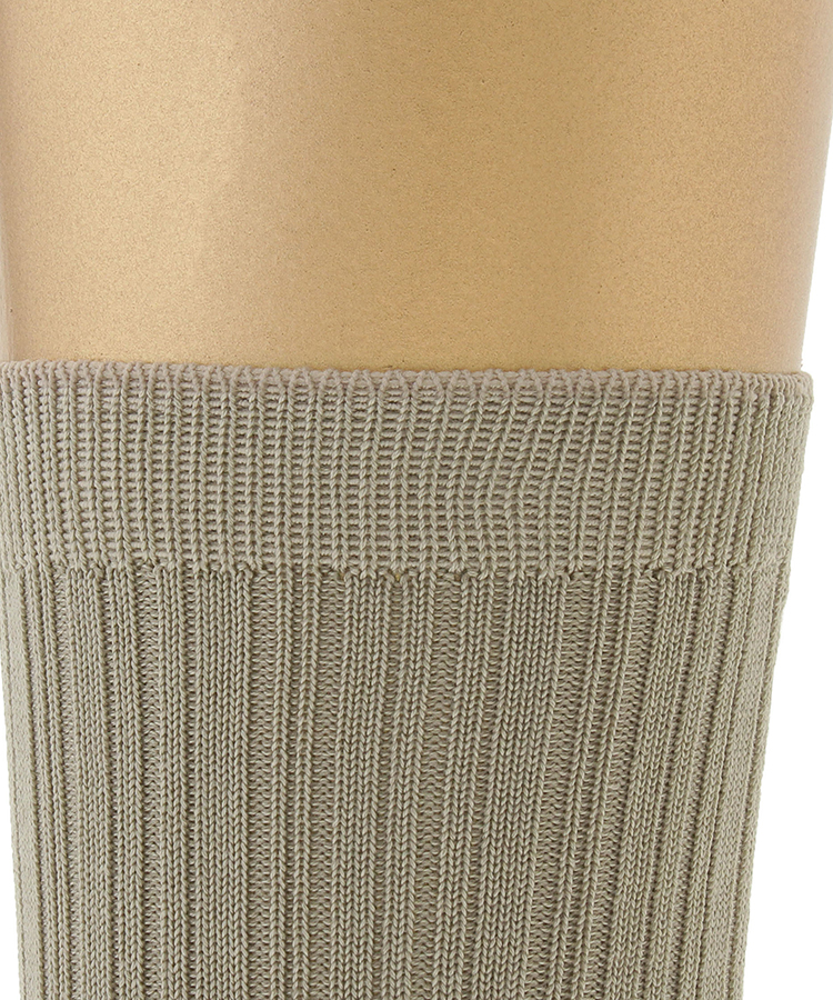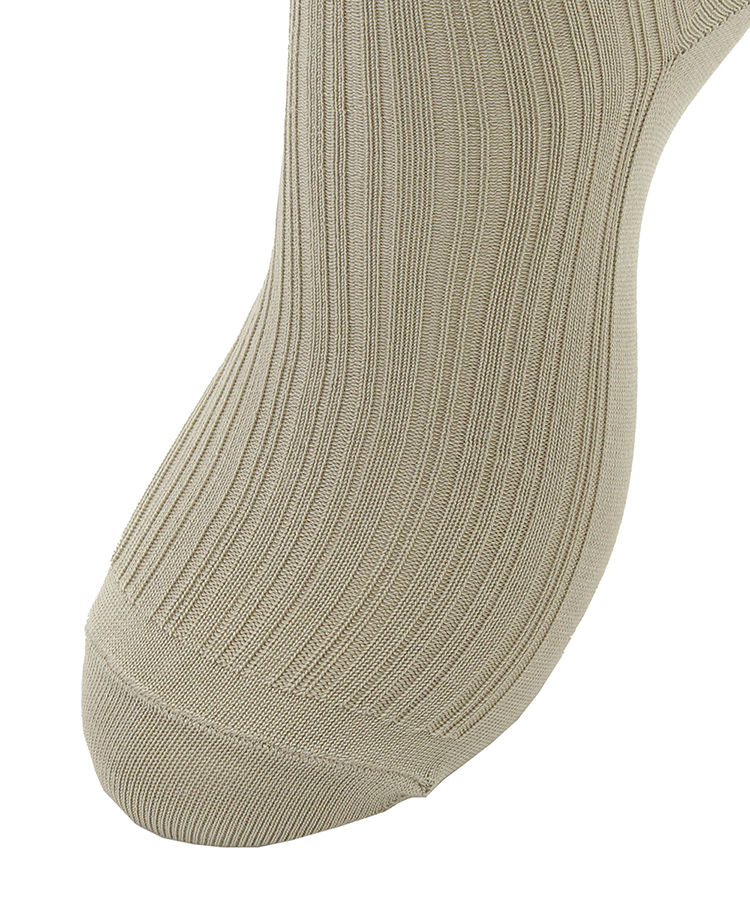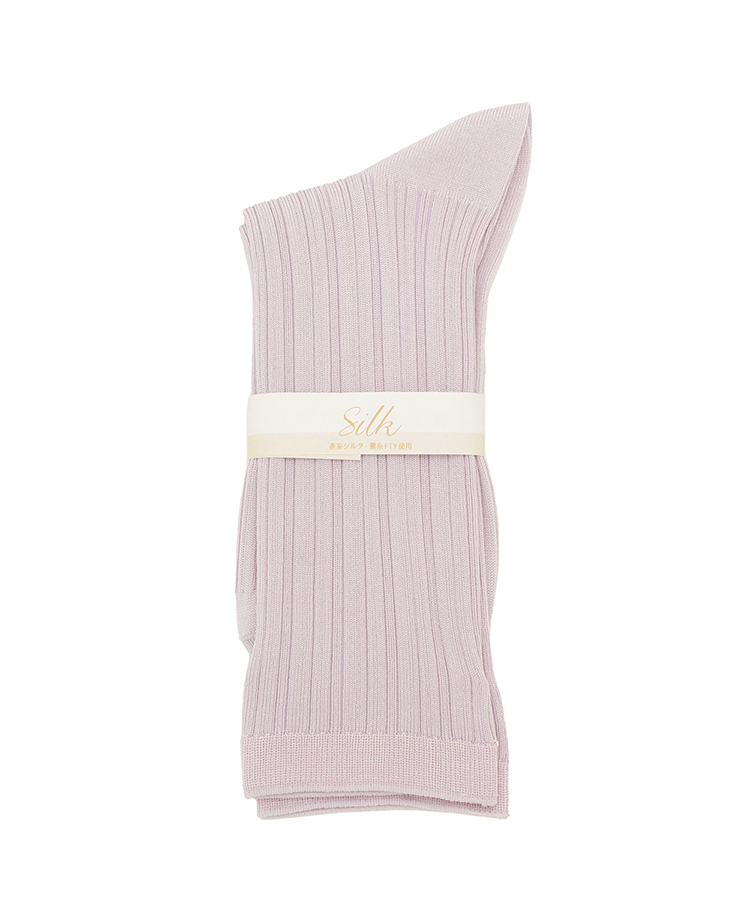 シルクの中でもなめらかな質感と光沢を残した絹紡糸を使用したリッチなリブソックス。
