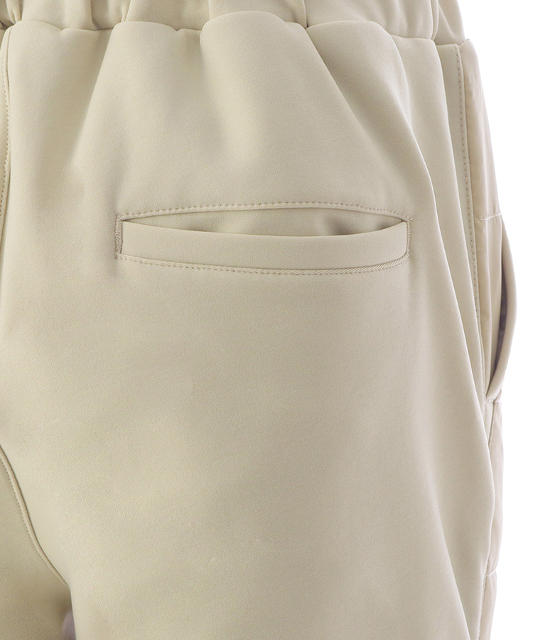 フロント生地が織りなす上品な光沢感がカジュアルなダウンパンツを洗練された表情に。