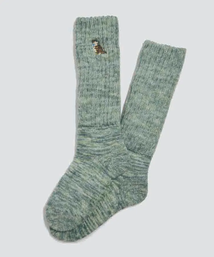 17℃ レディース ハイソックス MIXパイル裏起毛 LOVE ME KITTEN刺繍