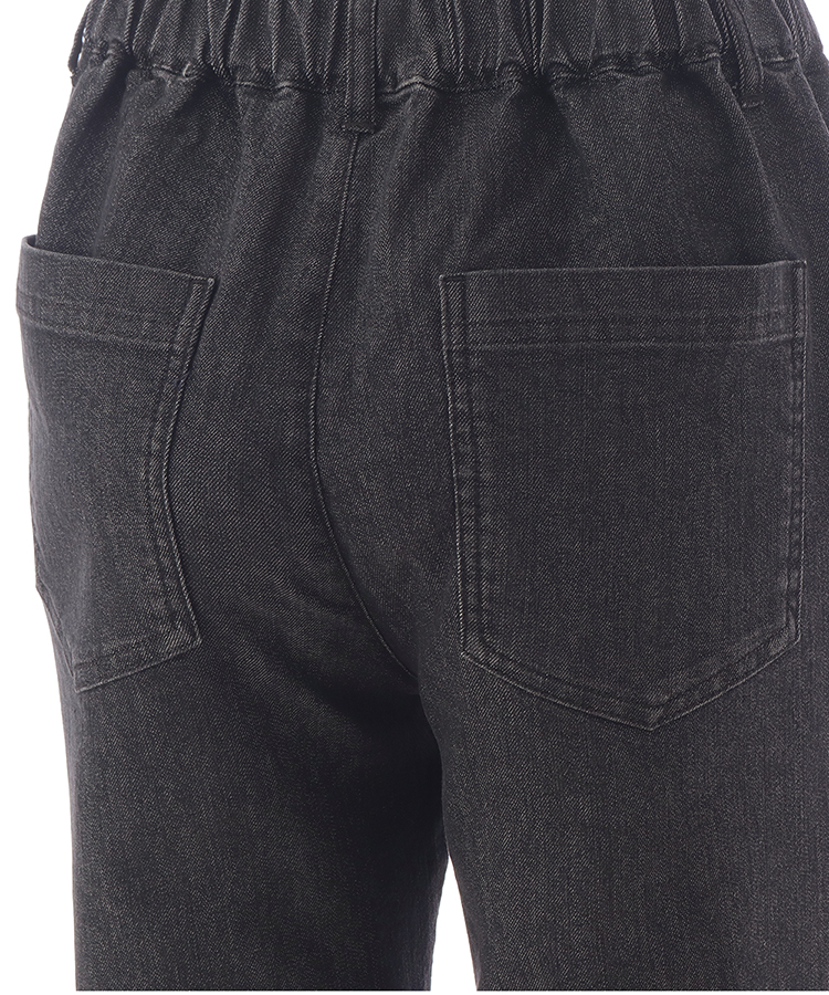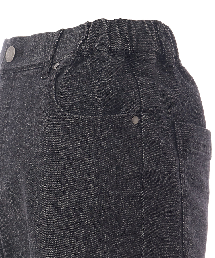身生地はブラックデニムとグレーのデニムで、大人のデニムスタイルをシックに引き立てます。