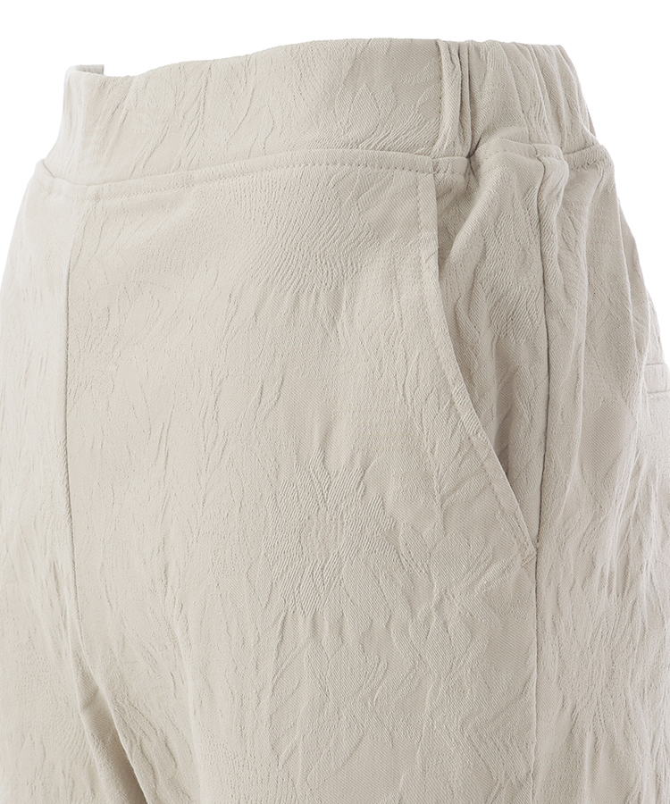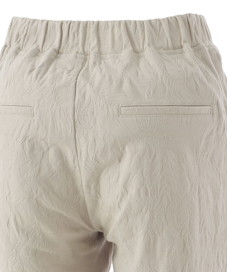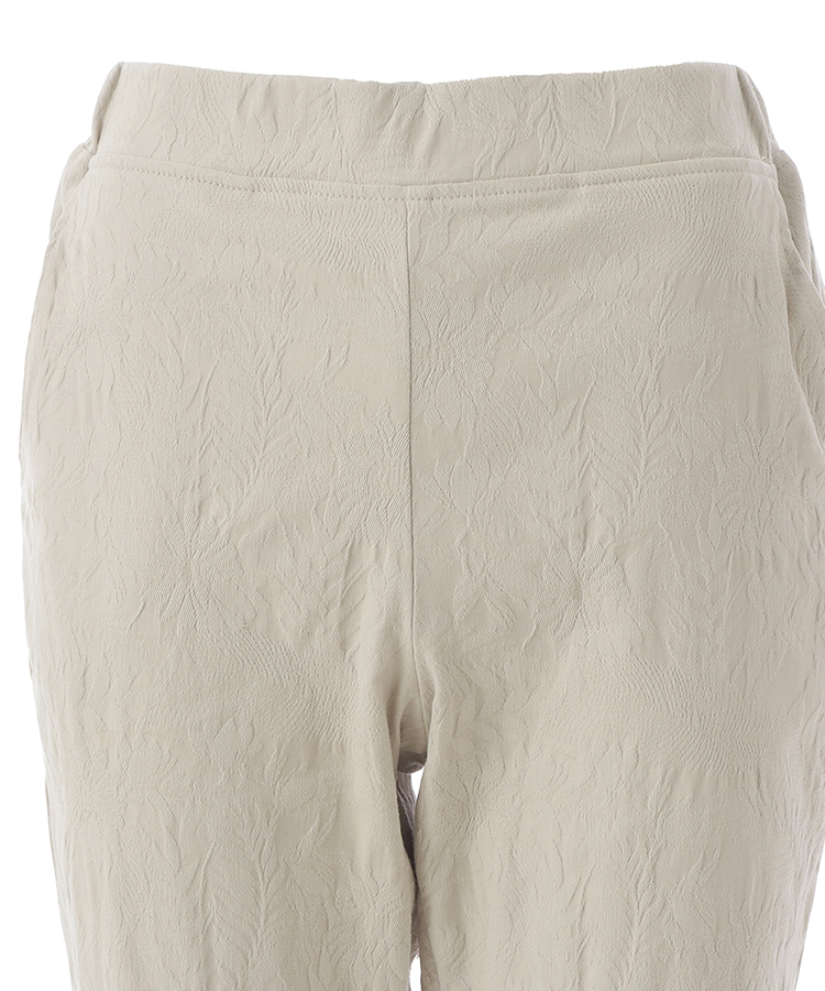 内側に微起毛を施したフラワージャガード柄パンツ。