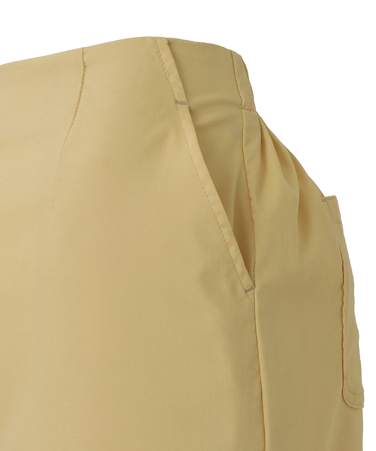 セミワイドのシルエットですが足首が見える短めの丈なので、女性らしいエレガントな印象に。