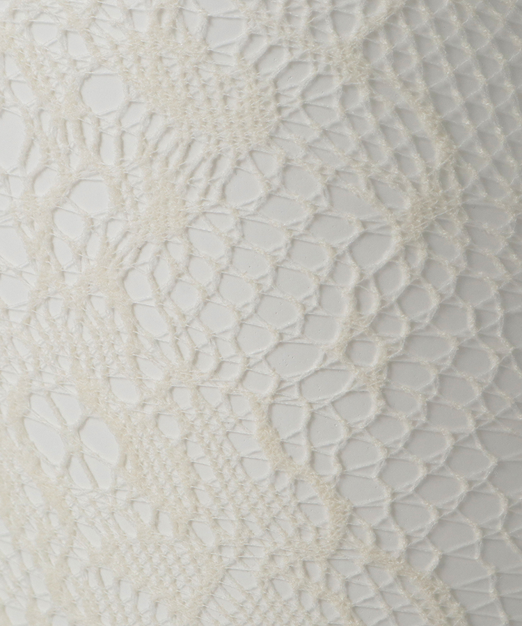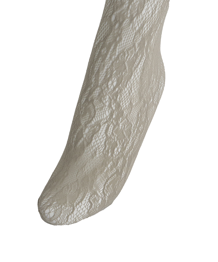 香り立つようなローズガーデンの柄が上品な華やかさを演出するクロッシェタイツ。