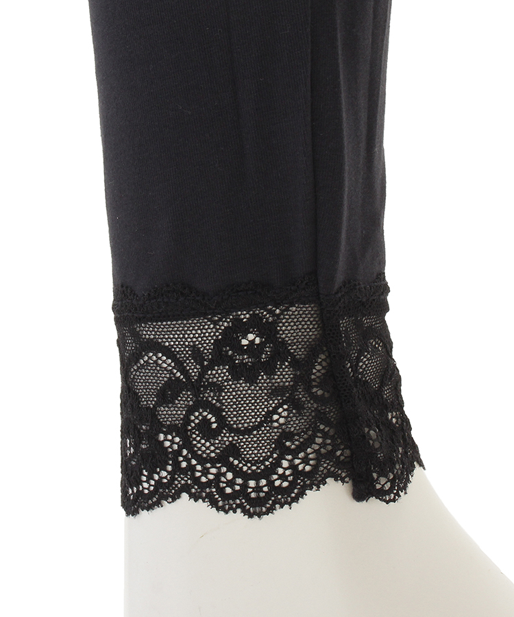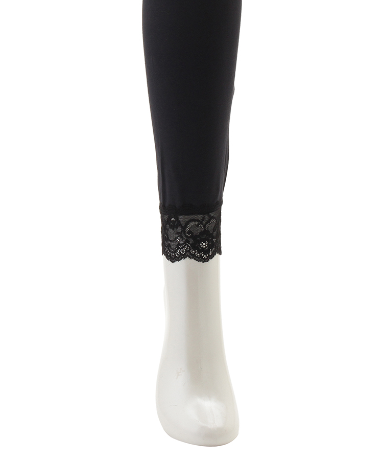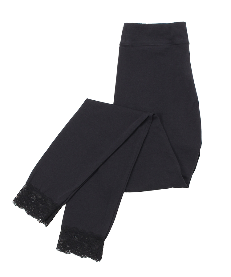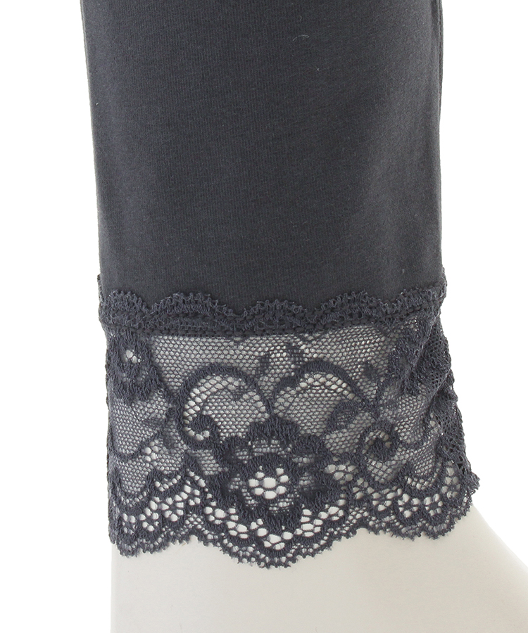 裾にレースのアクセントをあしらった薄手の綿混レギンスです。