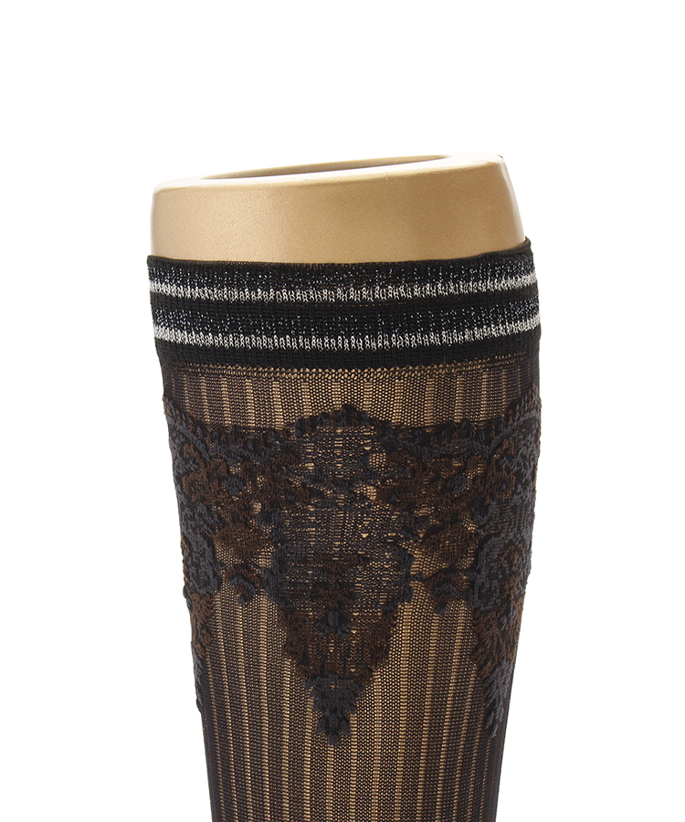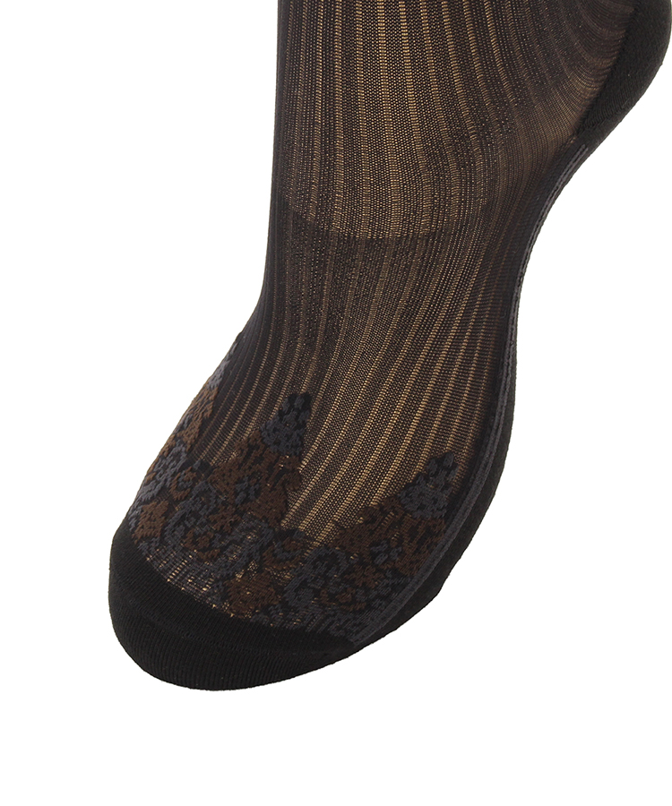 足もとに抜け感を出す繊細なレース柄のシアーソックス。