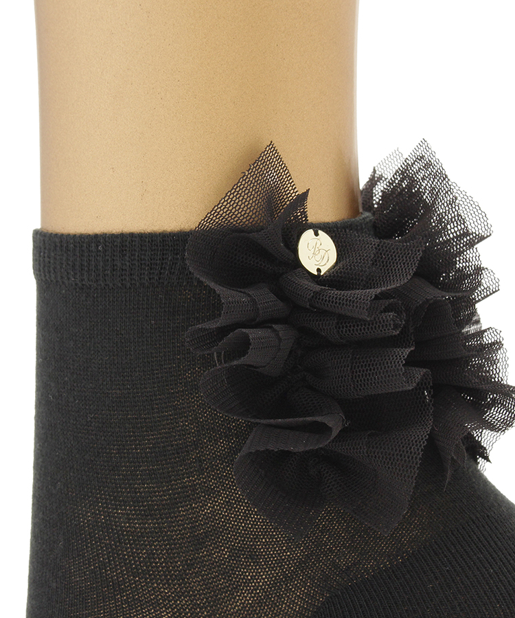 ドレスシャツの前立てのようなチュールフリルを後ろに施したクチュールソックスシリーズ。