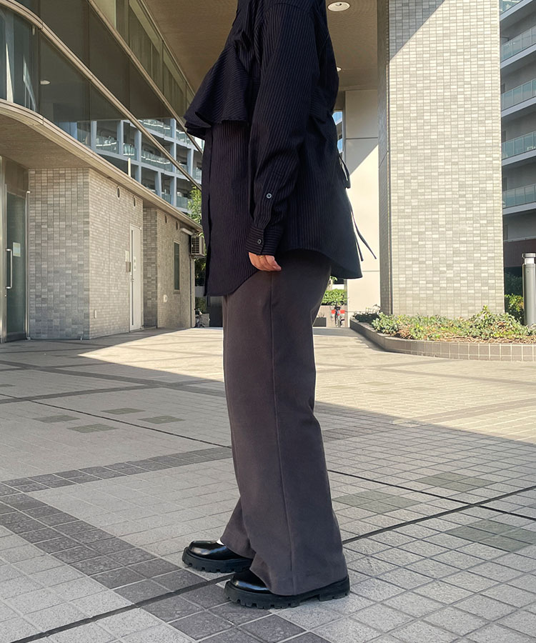 シワになりにくいハリのある生地なので、キレイなワイドシルエットをキープしてくれます。