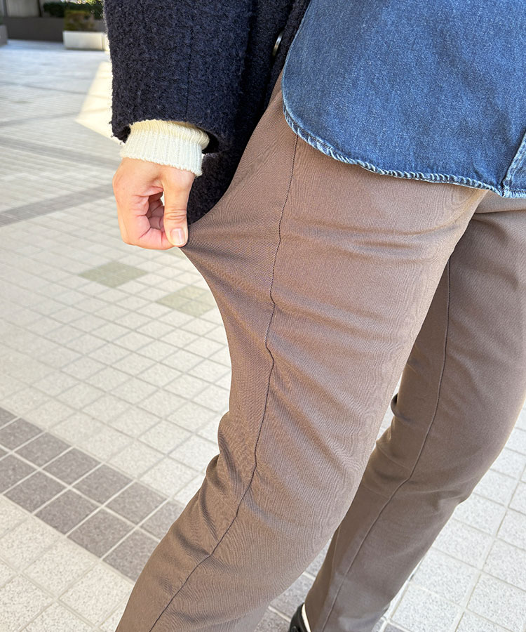 後ろ身頃はストレッチが効いて履き心地も快適。