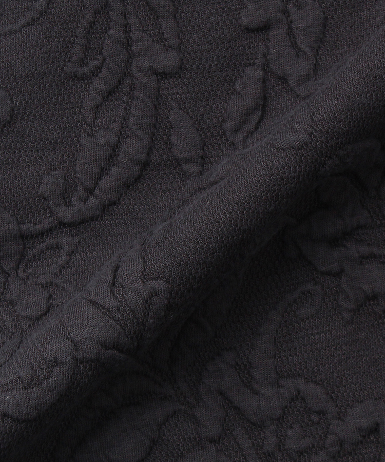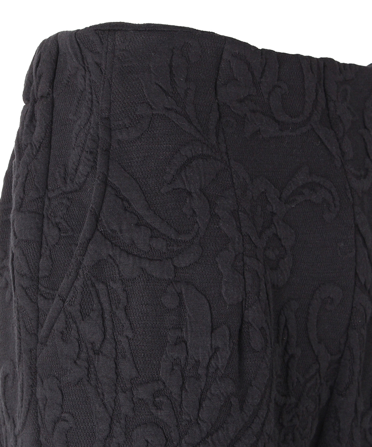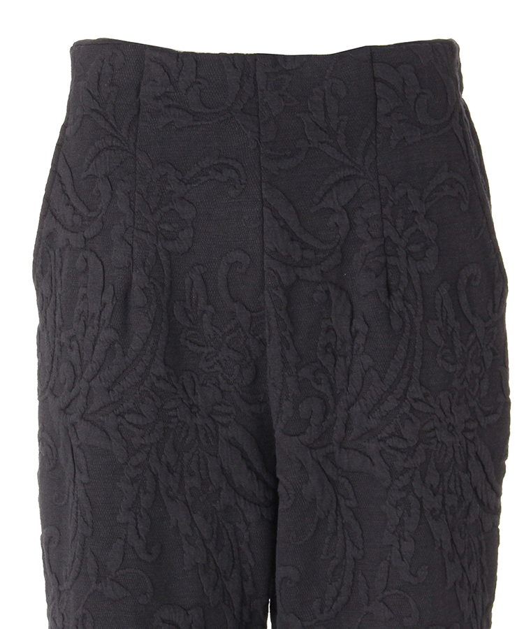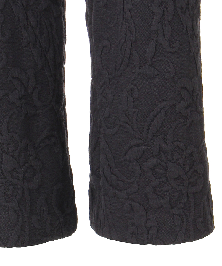 柔らかい生地に膨れジャガードのオーナメント柄を施したきちんと感のあるセミワイドシルエットパンツ。