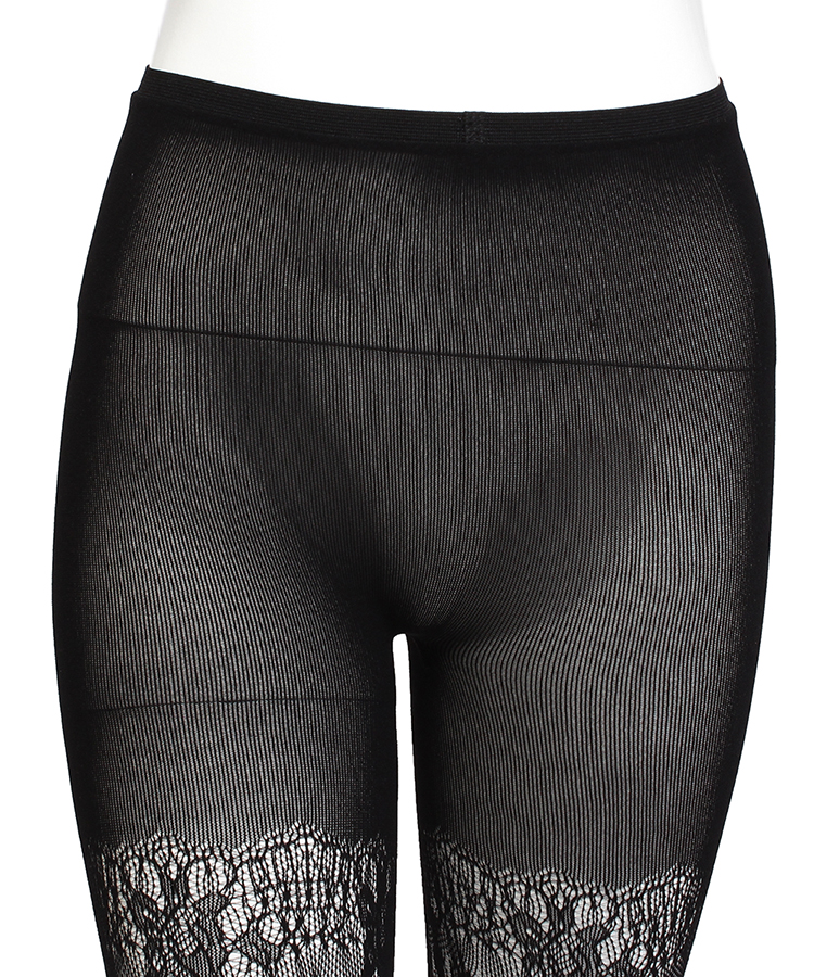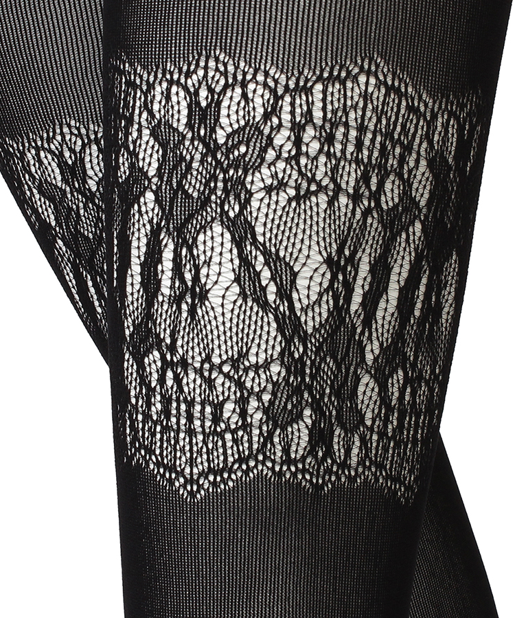 太もも部分とアンクル部分にレース柄をあしらったタイツです。