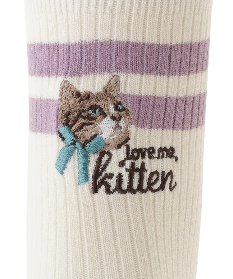 17℃ レディース ソックス LOVE ME KITTEN リブ刺繍 <巾着付き>