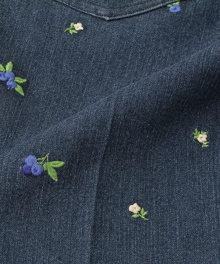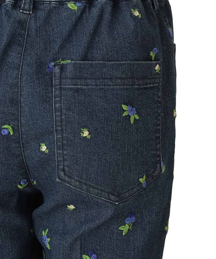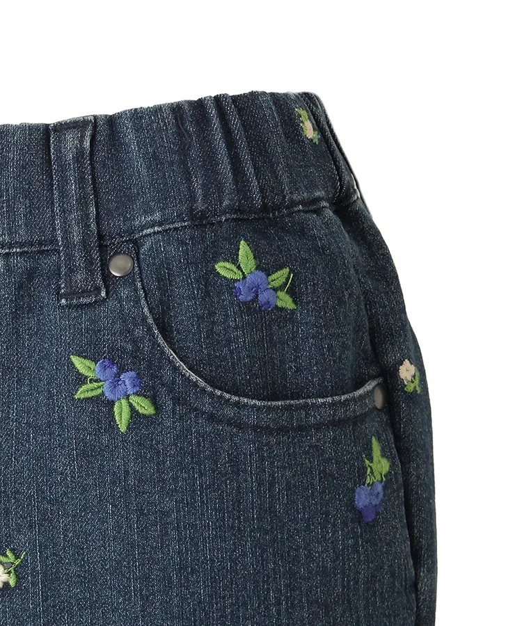 ブルーベリーモチーフの総刺繍が可愛らしいデニムパンツです。