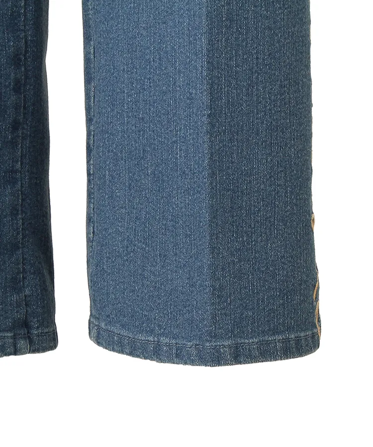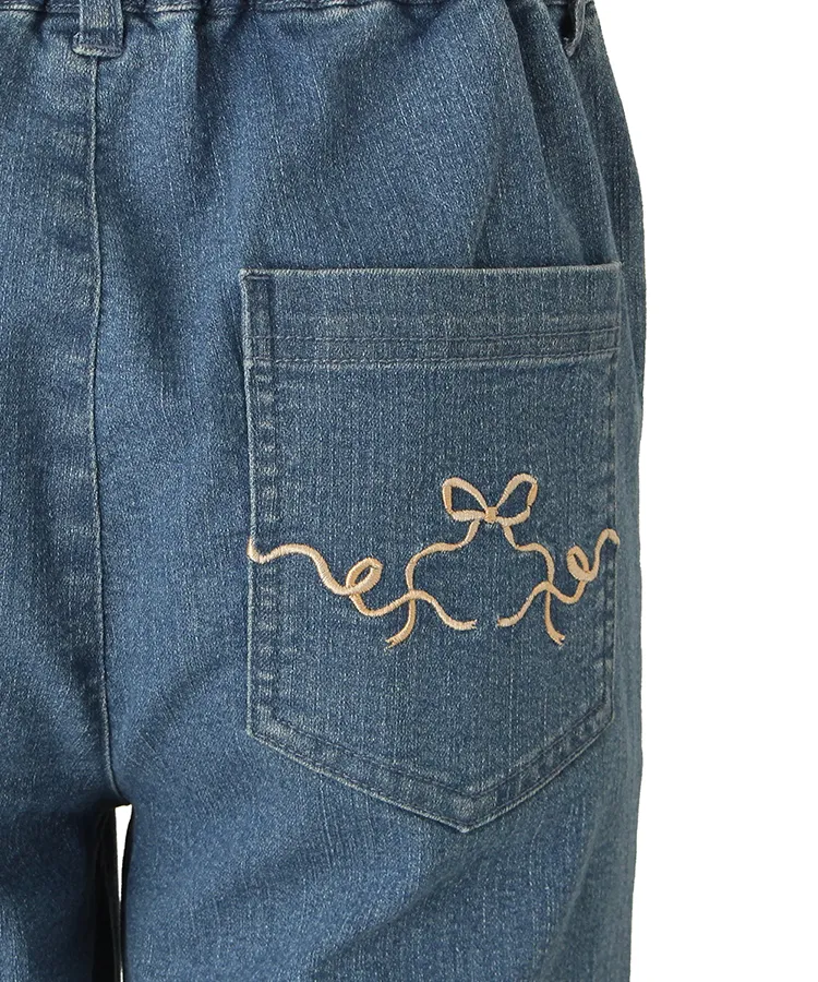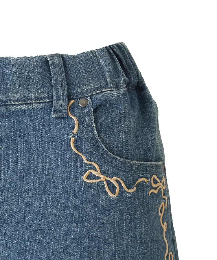 サイドにあしらったリボンの刺繍が可愛らしいデニムパンツです。