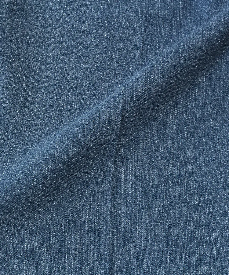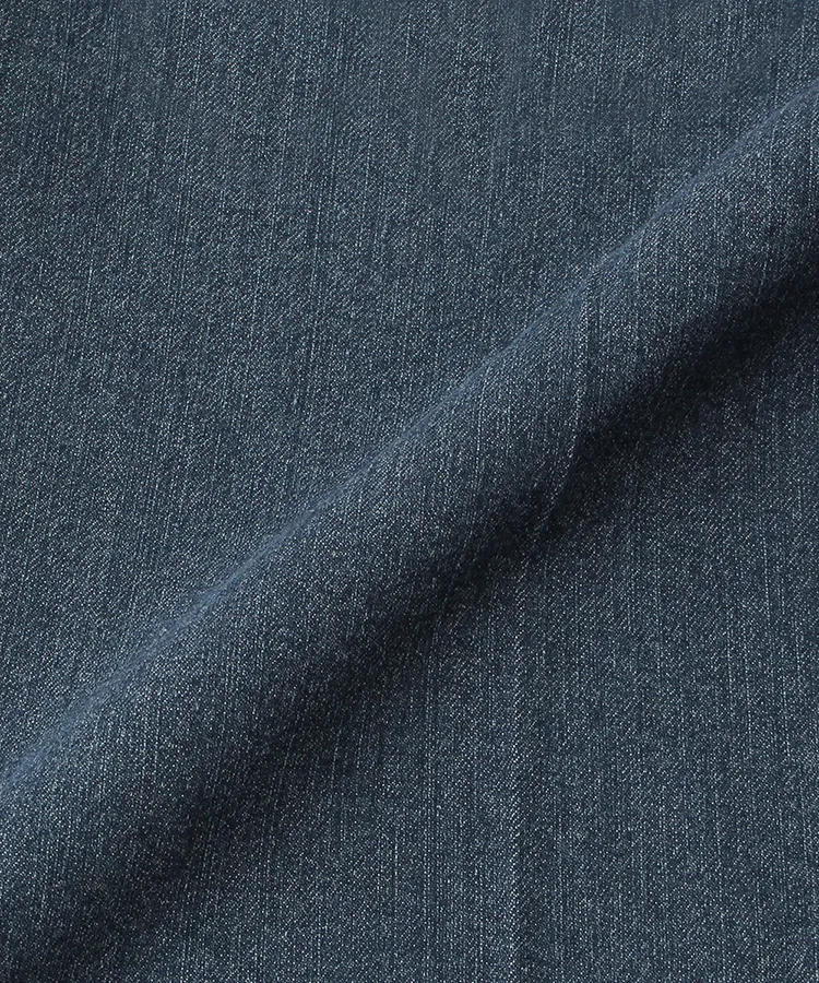 光沢のあるフィラメント糸で刺繍しているのでカジュアルになりすぎず、センタープレスでスッキリシャープな印象に。