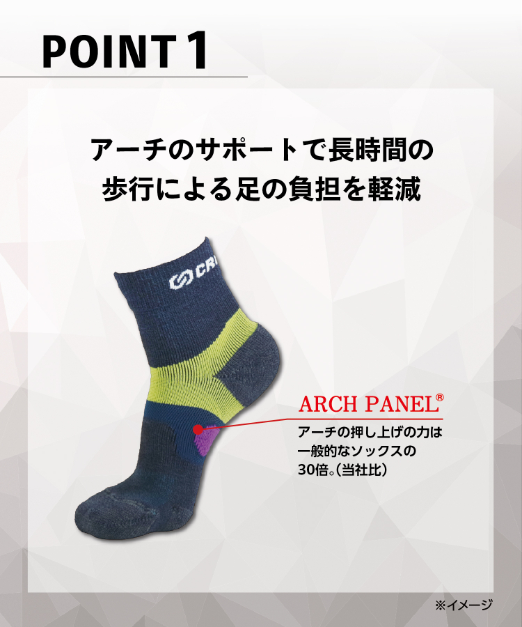 アーチの押し上げ力は一般的なソックスの30倍以上(当社比)です。